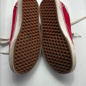 Eye-catching red sneakers with white accents and laces. Ideal for everyday style.