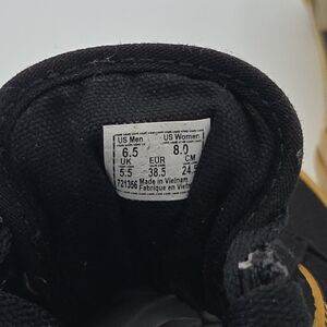 The product is a Vans x Harry Potter collaboration featuring the Old Skool Golden Snitch design, with a low top sneaker style and black colorway. The shoe is a men's size 6.5 or women's size 8, made with canvas upper material and a comfortable athletic design. Perfect for fans of both Vans and Harry Potter, this unique sneaker combines style and character in one fashionable footwear option.