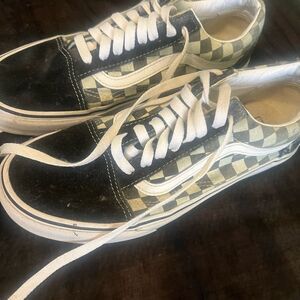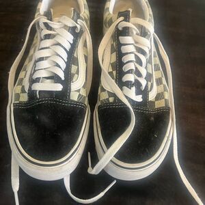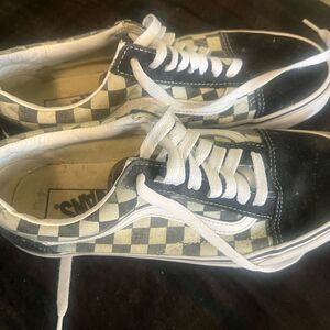 Vans sneakers featuring a black and white checkerboard design. Includes white laces for a classic look.