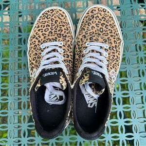 Tan and black cheetah print high top sneakers with white laces. Some definite wear and discoloring from jeans. But still lots of life left! Offers extremely welcome!