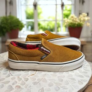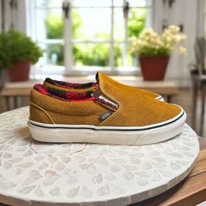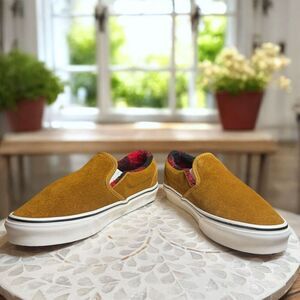 Vans Classic Slip-On, Cozy Hug Vans, Vans Sherpa Slip On, Buffalo Plaid Vans, Vans Ochre Suede, Vans Skate Shoes, Vans Men’s 6, Vans Women’s 7.5, Sherpa Lined Sneakers, Fall Winter Vans, Unisex Vans Slip On, VN0A5KX6B9M, Christmas, holiday, snow, winter, ski, trip