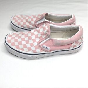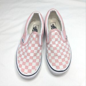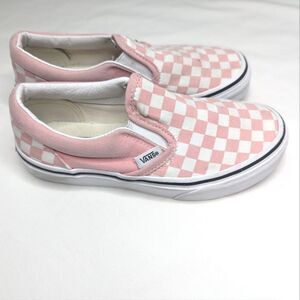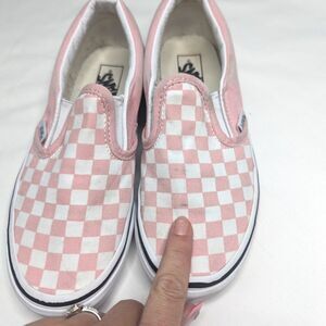 Girls pink checkered Vans, slip on shoes, size 2.5