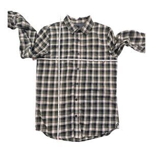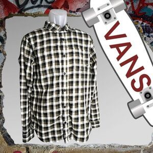 Vans Men's Plaid Flannel Tailored Fit Button Down Shirt Black Green Size Small