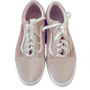 Chic Vans sneakers in light pink. Features white detailing. Perfect for everyday wear.