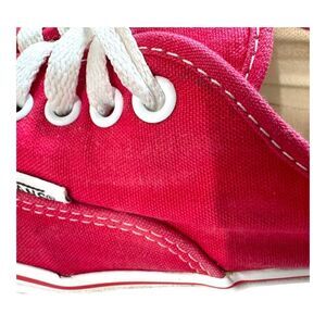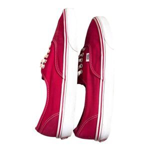 Vans Off The Wall Mens US 12 Red Canvas Lace-Up Sneakers Classic White Soles SEE