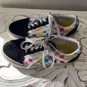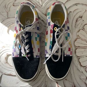 Vans Old Skool rainbow checker womens 6.5 suede and canvas.