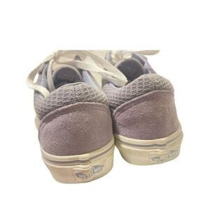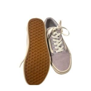 These Vans sneakers showcase a stylish white and purple color scheme, highlighted by the iconic white stripe along the side. Crafted from a blend of suede and canvas, they offer a textured and casual look. The flat, grippy soles make them perfect for skateboarding enthusiasts.