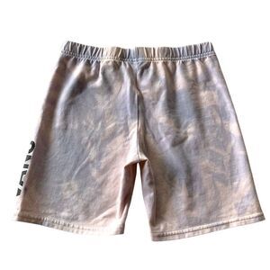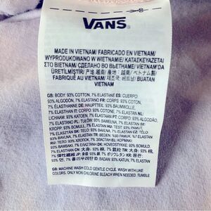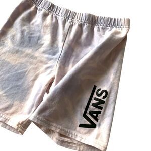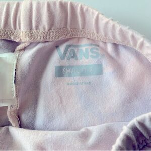 Pink and purple water wash tie dye print with vans logo at side leg. Hits mid thigh. In GUC, no stains or holes.