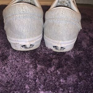 Worn but in great condition, super comfy vans with a grey and white striped pattern.