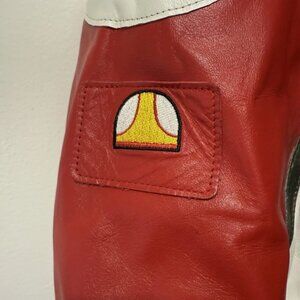 For sale is a rare and iconic Vanson Leather Mike Hailwood Tribute Jacket in size 46. This jacket pays homage to motorcycle legend Mike Hailwood and combines Vanson's superior craftsmanship with a timeless racing design.