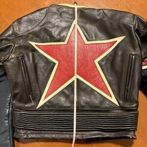 Vanson One Star Motorcycle Race Leather Jacket Black Red Size 36