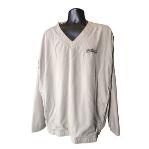 Vansport Budweiser Pullover Windbreaker Mens 2XL Tan Logo Embroidered V-Neck Long Sleeve Lightweight Jacket Beer Advertising Apparel