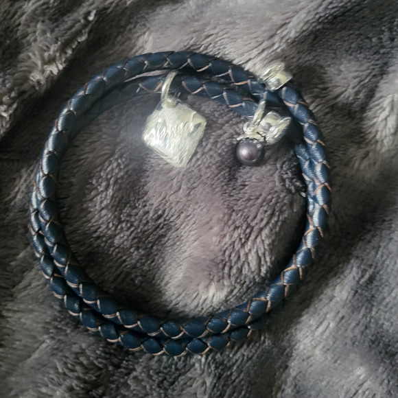 Brand new bracelet. Looks lighter in pics. Is true black.