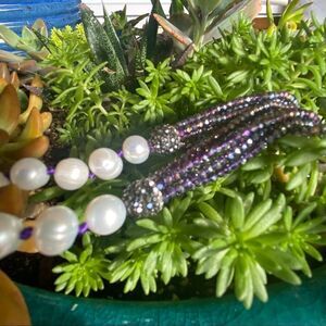 Vantel Pearl Co. Such A Tease Lariat Necklace Tassels feature Violet Crystals accented by 5-6mm Pearls.