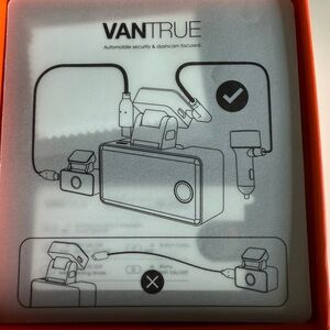 Vantrue Element 3 dash cam with accessories. Includes cables, mounts, and user manual. Sleek black design.