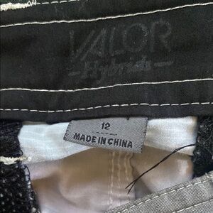 Vapor kids' swim trunks featuring stylish pink, gray, and white stripes. Perfect for fun days at the beach or pool.