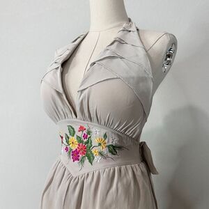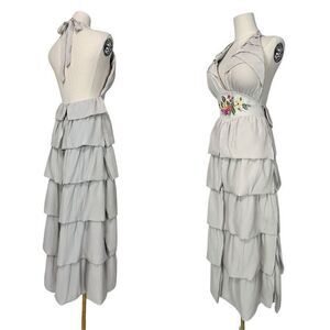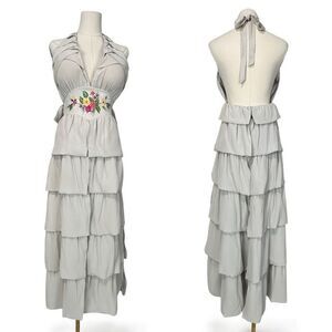 Vaprio Stile SRL Silk Halter Dress Italy Tiered Embroidery Sz S Boho Romantic