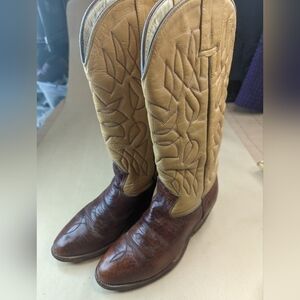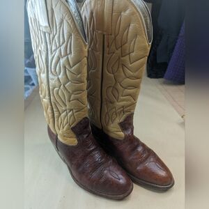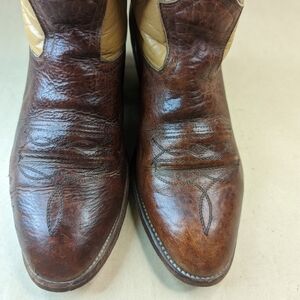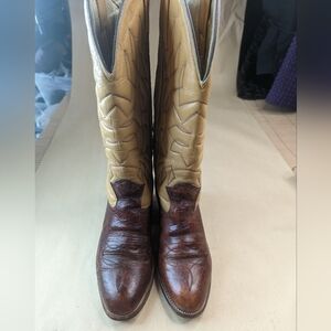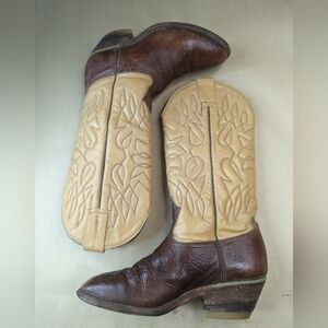 Vaqueros boots women's sz 8M Shrunken bull shoulder brown leather lower, butterscotch upper. good condition