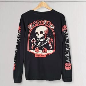 Vardagen Halloween Long Sleeve Tee Crew Neck M Black Cotton Skull Made In USA