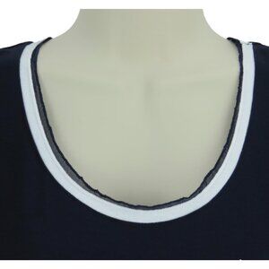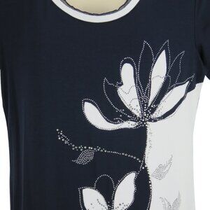 Variations Top Womens Size Small Blue White Studs Floral Short Sleeve Scoop