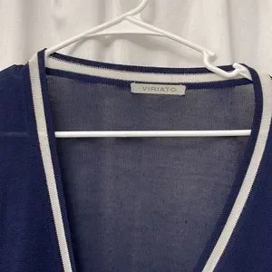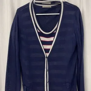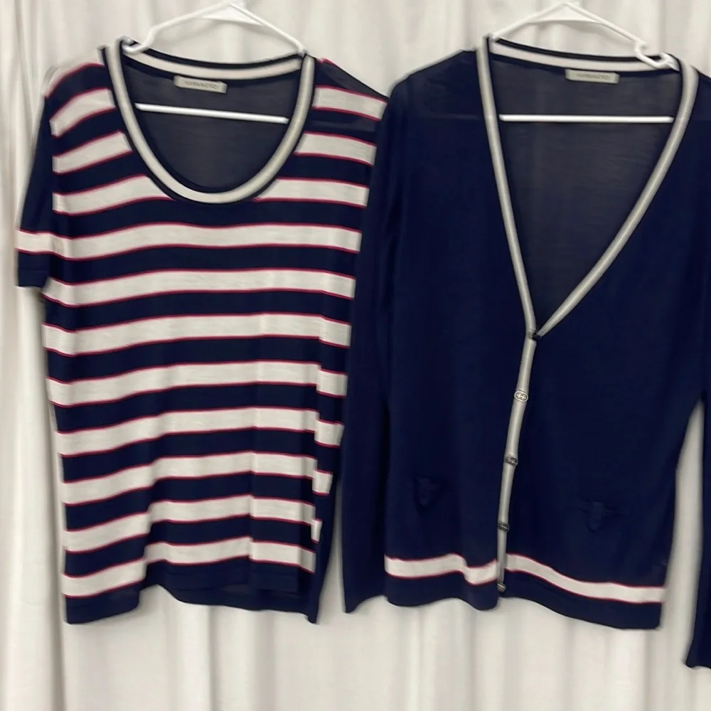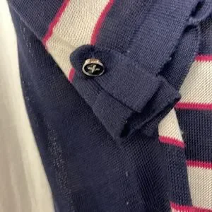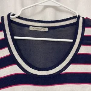 Navy Blue sweater with striped blue off-white and dark pink tee Made in Spain