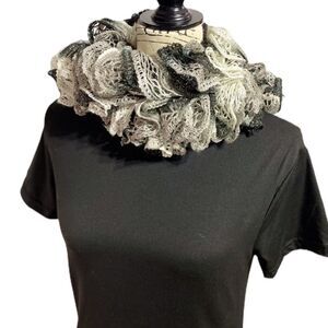 Women’s boa style scarf, long neck wrap scarf! Handcrafted crochet in colorful white, black, gray tones. Great fall and winter fashion accessories!