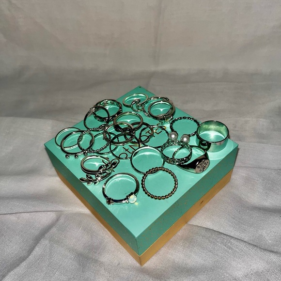 Multiple never used rings, the sizes are varied with sooo many designs. They have never been worn, and are sooo cute. I would keep if they fit my fingers.😂