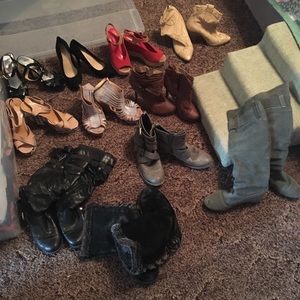 NWT romper size sm, shoes 7-8.5, miss me and American eagle pants 28 & 29 tank tops