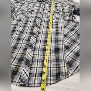 Various Artist Blue Black Plaid Snap Pearl Front Shirt, sz LG