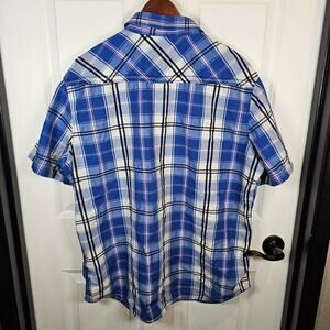 Men's Size 2XL Various Artists Button Up Blue Plaid Short Sleeve Shirt - Condition 8/10 EUC