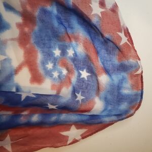 Various Scarves, 6 total, mix of floral, lace, patriotic, and Dias de Muertos. Sparkle, polyester and chiffon looks.