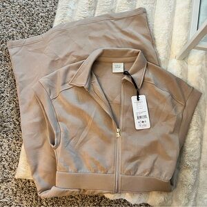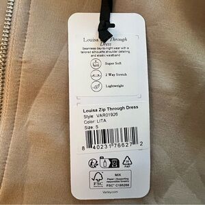 Super soft NWT Varley Louisa Zip Through Dress in color Lita. Size small. Front Length: 43.3". Stock photos are "Light Taupe", which has a slightly pinker hue than Lita. Wrinkles are from being in storage but will steam or iron out easily. This dress is SO soft and comfy! And who doesn't love pockets!? Make me an offer! 🥳