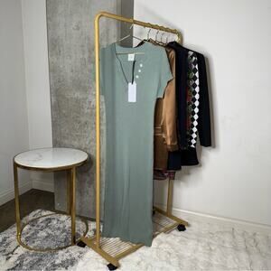 Varley Aria Short-Sleeve Knit Midi Dress in Mint