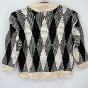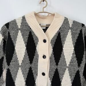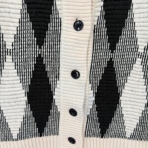 Varley Black and Cream Argyle Oversized Cardigan-M