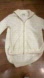 Elegant cream knit sweater with textured design. Features a ribbed collar and intricate detailing.