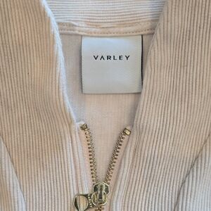 Chic cream ribbed jacket by Varley. Features a zip closure and front pockets. Perfect for layering.
