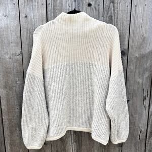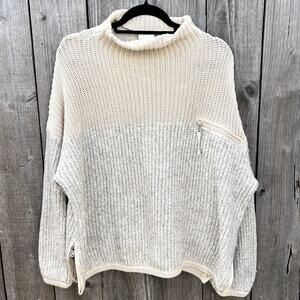 Varley | Darwell Two-Tone Oversized Mock Neck Chunky Knit Sweater Cashew Size M