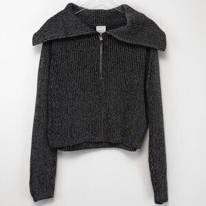 Varley Elise Half Zip Sweater 100% Cotton Ribbed Knit Collar Black Size Large