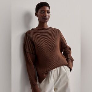 Style Notes: heavy sweater, elevated athleisure, fall, crew neck, brown sweater, chocolate brown, long sweater, heavy sweater, thick sweater, warm sweater, high neck, long sweater, aprés ski, casual, contemporary, luxury lounge, FP Movement, fitted, luxury loungewear, mock neck, boat neck, turtle neck, side split, high low, coastal grandma, athletic, ribbed knit, oversized, slouchy, loose knit sweater, pullover, soft, exercise, athleisure, free people, walk_incloset, thick knit, open knit, timeless, brunch, weekend wear, neutral, cozy, errands, chunky, theory, aritzia, everlane, madewell, layering, dog walk, slouchy, textured, vertical lines, golf, sporty, solid color, long sweater, tunic, boxy, casual, barre, yoga, activewear, loose fitting, weekend wear, sporty, travel outfit, plane outfit, black, stretchy, roomy, big cuffs, roll cuff, coffee bean, slim fit