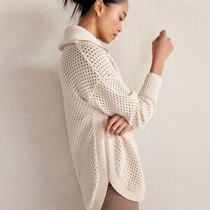 Varley Finn LongLine Cream Open Knit Jacket gold zipper