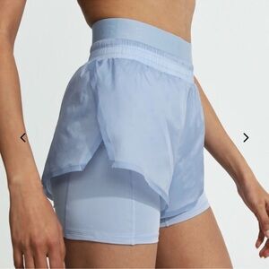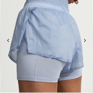 Pre-owned condition, size L, main 100% nylon lining 75% nylon 25% lycra, high rise 2 in 1 running short with a branded waistband and sheer, lightweight overlayer, breathable, has pockets on the side. Please see photos for measurements. A5