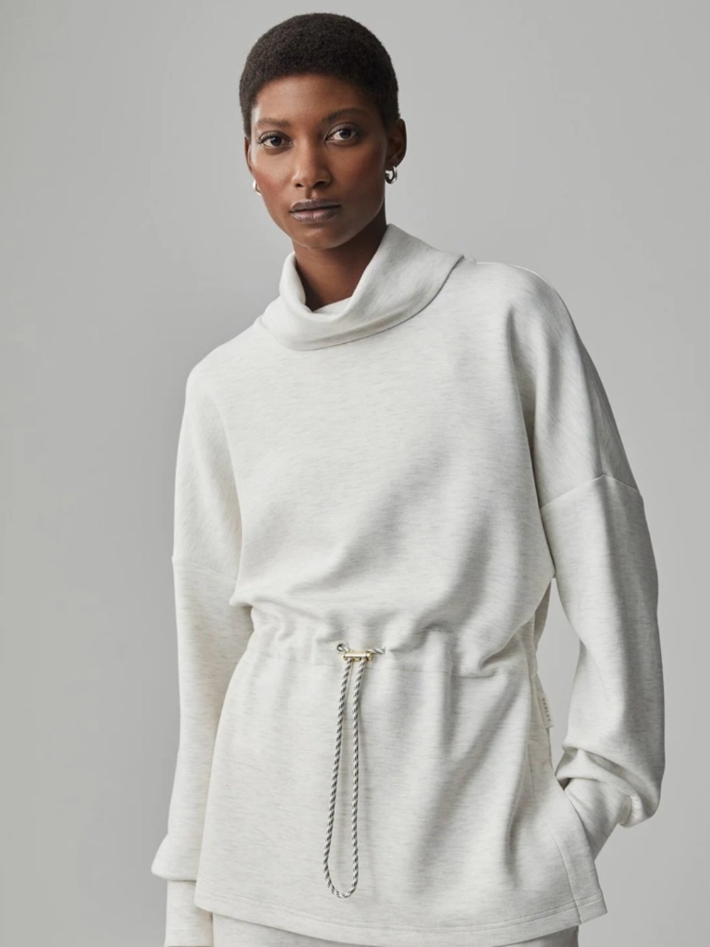 Cinched drawstring Size small Cowl neck Like new Light grey