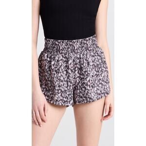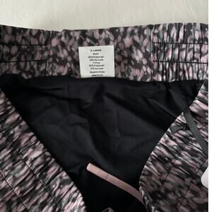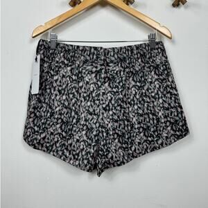 New Varley Kallin Running Shorts Color: Dark Motion Petal Lightweight super-stretch technical weave. Enclosed elastic waistband with interior drawstring. Mesh brief lining. Medium support for running. Breathable and moisture-wicking material. Shell: 86% polyester/14% elastane. Lining: 95% polyester/5% elastane. Machine wash Rise: 13.75in approx. Inseam: 1.5in approx.