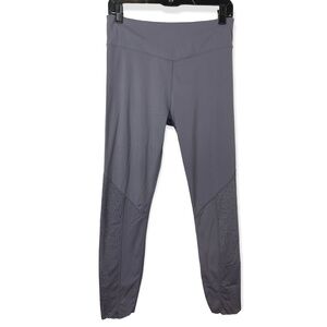 Grey purple leggings. Laser cut details. Ankle length. Size medium.