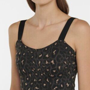 The leopard-printed Lindale tank top from VARLEY is designed with the wearer's comfort and support in mind. It's made from black stretch-fused Letelux fabric that's sweat-wicking, and comes with adjustable shoulder straps, plus a built-in sports bra.