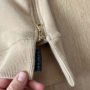 Stay cozy and stylish with this elegant tan sweatshirt. Perfect for any occasion. Some piling but not too bad.