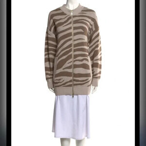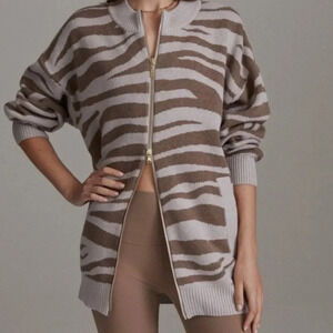 Varley Mayberry Zip Merino Wool longline cardigan in cobweb doe zebra Size S