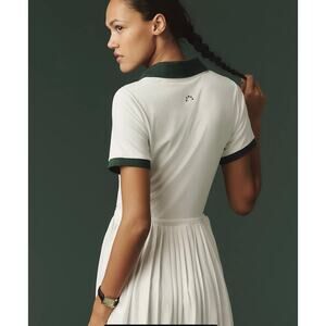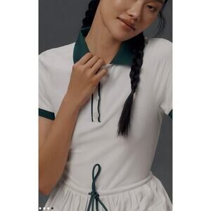 Varley Paloma Short-Sleeve Court Mini Dress White/Forest - M