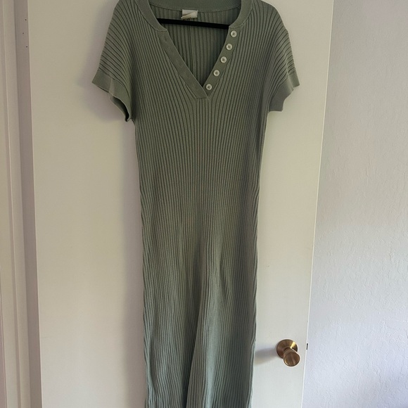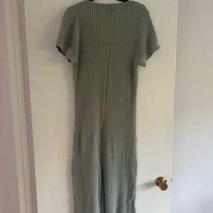 Chic ribbed midi dress by Varley. Features a V-neck and button accents. Small slit in back.