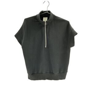 Varley Ritchie Black Viscose Short Sleeve Sweatshirt Size XS: super-soft, mid-weight jersey, ribbed hem, mock neck, short sleeves, quarter zip, measurements: 20.5 inch bust x 23 inch length.